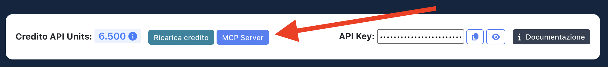 • Integrazione MCP Server: all’interno della API Dashboard trovi l’accesso a questa integrazione avanzata.